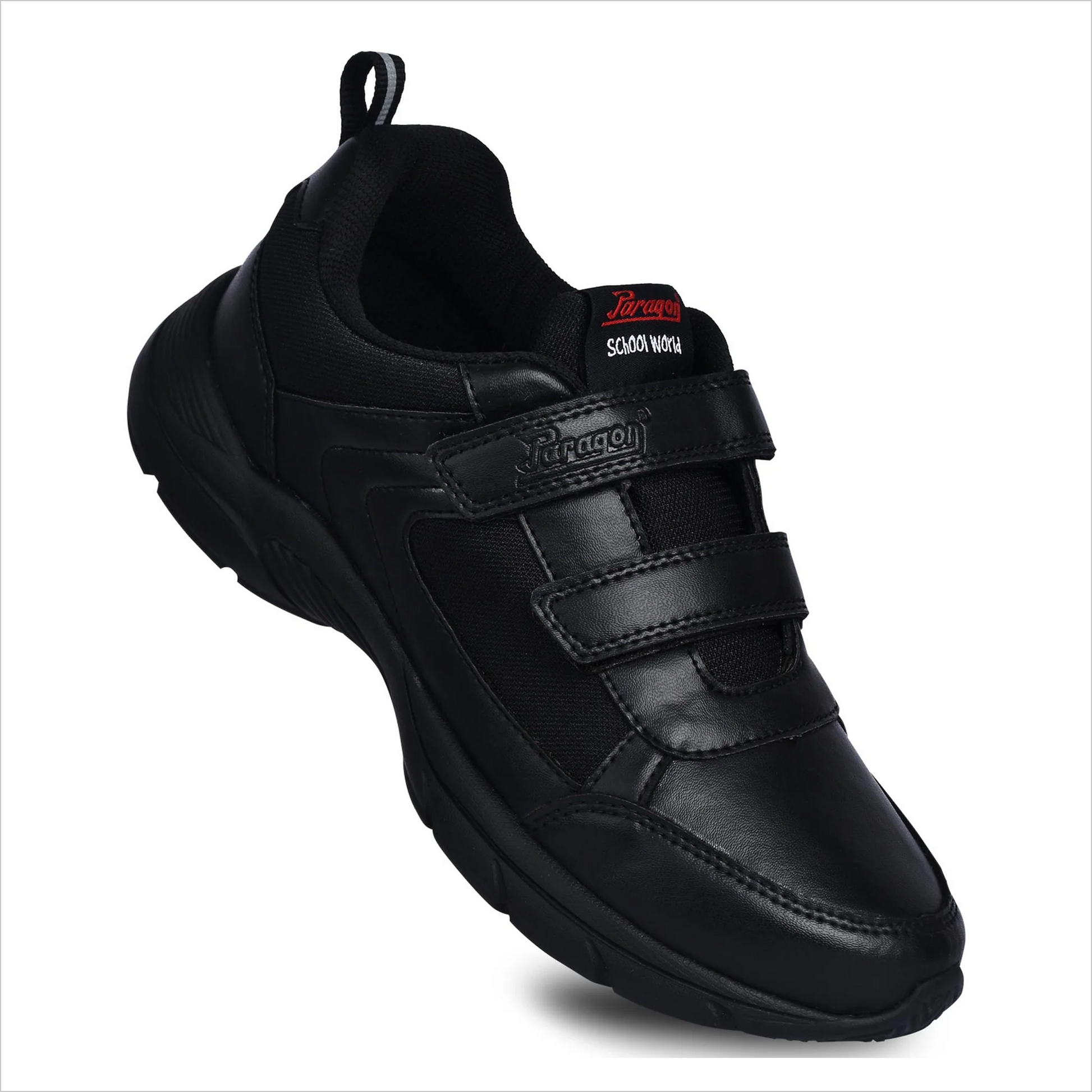 Comfortable and durable black shoes with dual Velcro straps for easy wear. Features a cushioned sole and non-slip grip, perfect for school, work, or daily use.